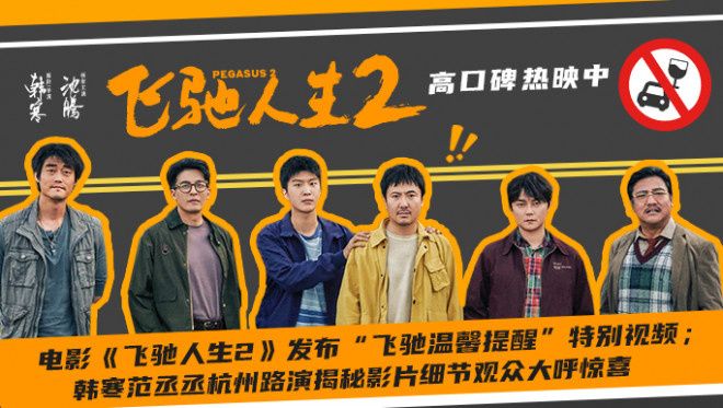 電影《飛馳人生2》發(fā)布“飛馳溫馨提醒”特別視頻腦洞大開(kāi),以搞笑戲謔方式剪輯重組片中鏡頭,溫馨提醒觀眾開(kāi)車(chē)注意安全,勿酒駕、勿危險(xiǎn)駕駛、勿惡意競(jìng)速。大年初五,編劇兼導(dǎo)演韓寒、演員范丞丞現(xiàn)身全國(guó)路演杭州站,收到“財(cái)神”的美好祝福,并分享了幕后配音陣容、巴音布魯克冠軍墻照片、厲小海隱忍哭戲等豐富細(xì)節(jié)?!帮w