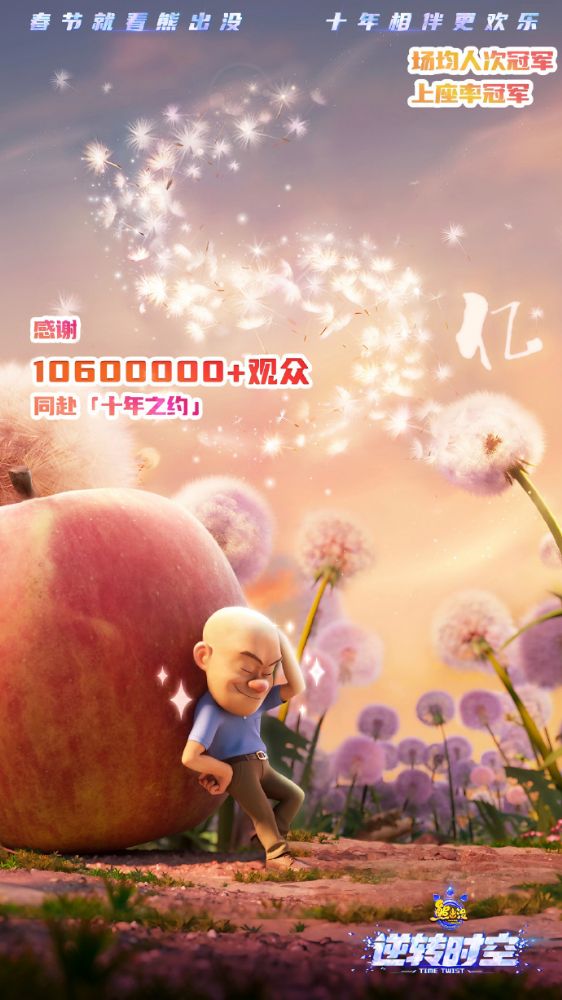 《熊出沒》系列第十部大電影《熊出沒·逆轉(zhuǎn)時空》暫列第三,收獲票房5.5億,超110萬觀眾走進影院赴十年之約。該片在動畫片方面表現(xiàn)搶眼,仍是春節(jié)期間大小朋友觀影首選。